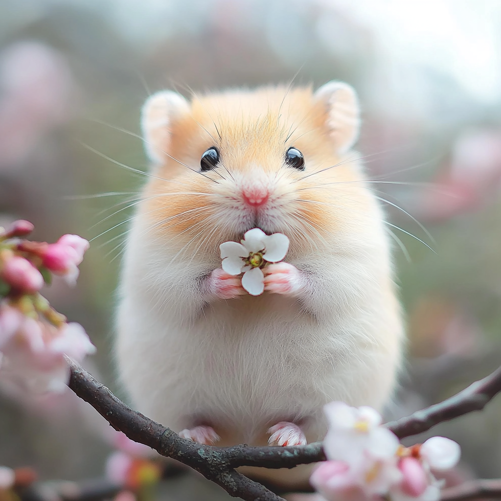 Adorable Hamster with Cherry Blossom Charm